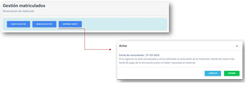 Una vez realizado el pago podrá ingresar a IMPRIMIR CARNET y, en cuanto esté acreditado en sistema se abrirá su credencial y quedará finalizado su trámite. Vale aclarar que mientras no esté imputado su pago, al ingresar en la opción verá el siguiente mensaje: