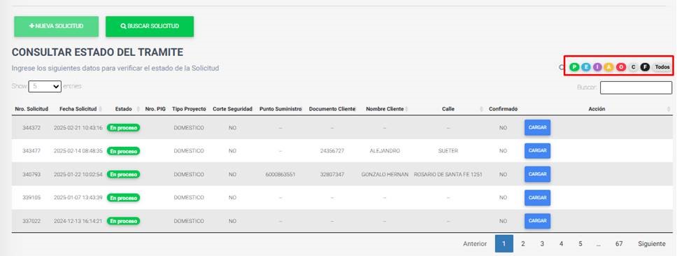 O bien, haciendo click en “Todos”, donde se visualizarán todas sus solicitudes disponibles.